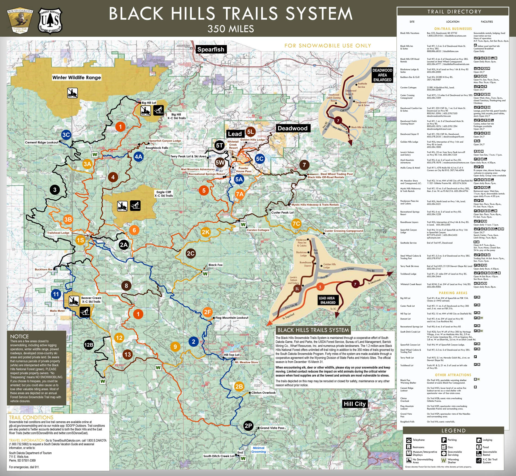 In case you didn’t catch it before, the only access we have to the property once the snow sets in is via snowmobile. (UPDATE: We started plowing access in 2024) It is located inside the Black Hills National Forest off a National Forest road that is not plowed. The upside is that South Dakota and Wyoming (this part of the Black Hills sits on the state line) maintain an extensive, groomed snowmobile trail system that spans over 350 miles throughout the northwestern part of the National forest.